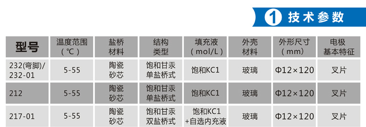 232/232-01、222、212:廣泛使用的**典型參比電極,性能穩定可靠。高溫(超過70℃)時性能變差。電極中含有汞成分,不應隨意丟棄。