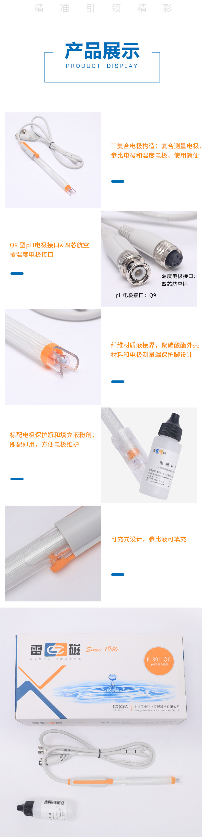 測量范圍:(0-14) pH溫度范圍:5-60 ℃液接界:纖維單鹽橋 參比結構:Ag/AgCl填充液:3.0KCl mol/L 外殼材料:聚碳酸酯敏感膜:玻璃球泡 溫補元件:PT-100外形尺寸:Φ12×120 mm接插件:BNC(Q9型&Q6型)