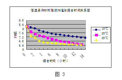 恒溫條件RF樹脂液PH值與縮合時間關系圖#p#分頁標題#e#