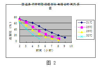 RF樹脂液恒溫條件透射比與縮合時間關系圖