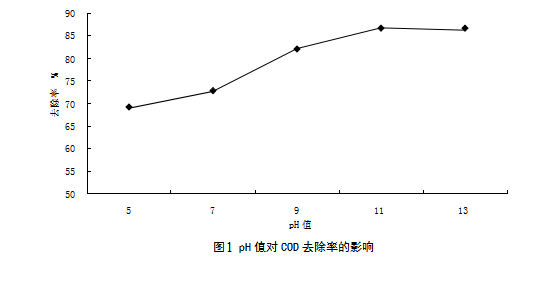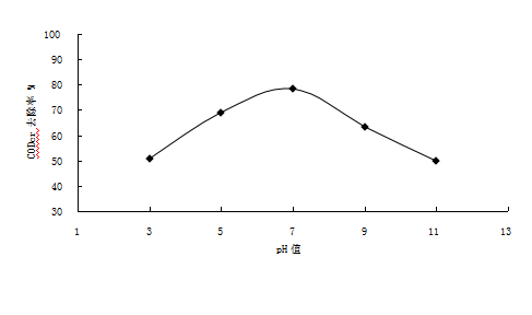 表1 pH值對(duì)CODcr去除率的影響